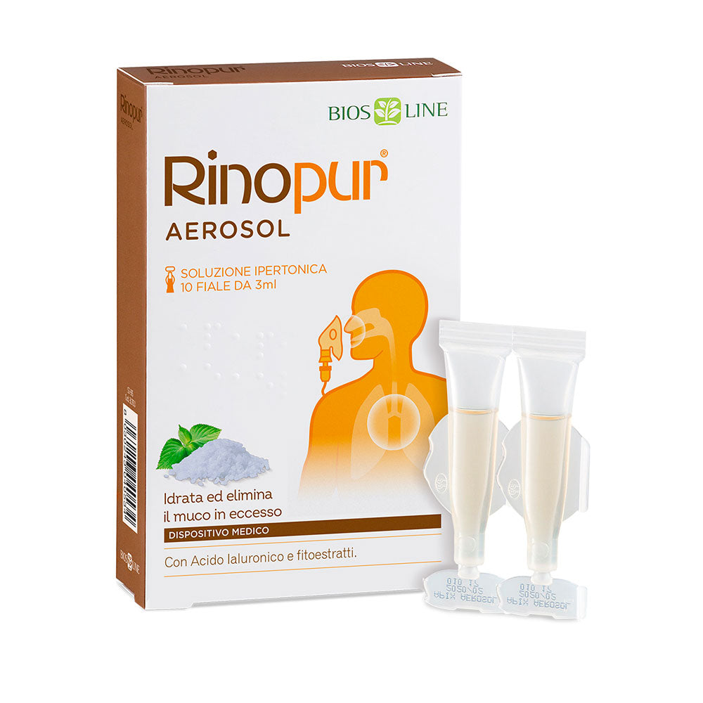 Dalla ricerca Bios Line nasce Rinopur Aerosol, un Dispositivo Medico ad uso inalatorio costituito da una soluzione ipertonica a base di estratti secchi vegetali* di Melissa, Perilla e Timo in combinazione con Acido Ialuronico. Rinopur Aerosol è indicato per contrastare la sintomatologia conseguente ad alterazioni del trofismo dell’epitelio respiratorio quali tosse, rinorrea, dolore tipica delle sindromi influenzali ma anche legate ad allergeni esterni. La nebulizzazione di sostanze idratanti, come l’acido ialuronico, può essere uno degli approcci terapeutici per ripristinare il livello di idratazione, donando sollievo alla mucosa irritata. Contribuisce all'idratazione anche l'ipertonia della soluzione, ciò permette la fluidificazione e rimozione del muco. Gli estratti vegetali* selezionati svolgono un’azione antiossidante e lenitiva contribuendo al ripristino dell’equilibrio fisiologico delle mucose respiratorie.