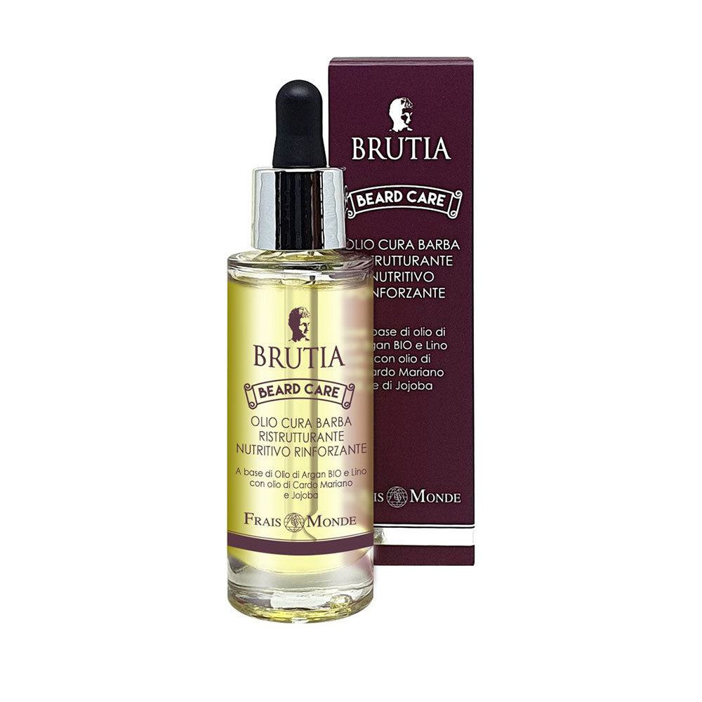 FORMULA INGREDIENTI ATTIVI 100%: OLIO DI ARGAN BIO, affetto anti crespo e districante, effetto illuminante rende la barba setosa e lucente. Idrata e rigenera. OLIO DI LINO, emolliente e riparatore, rende la barba morbida. Azione ristrutturante reidrata e normalizza la pelle. Previene la secchezza. OLIO DI CARDO MARIANO, setoso, poco grasso ed effetto levigante. OLIO DI JOJOBA, anti irritazione, protettivo e lenitivo. Contrasta la secchezza della pelle e della barba.