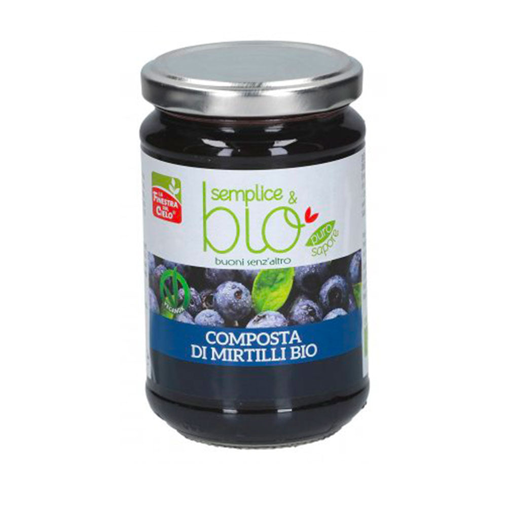 Mirtilli*, succo di mela concentrato*, purea di mela*, gelificante: pectina. *biologico.