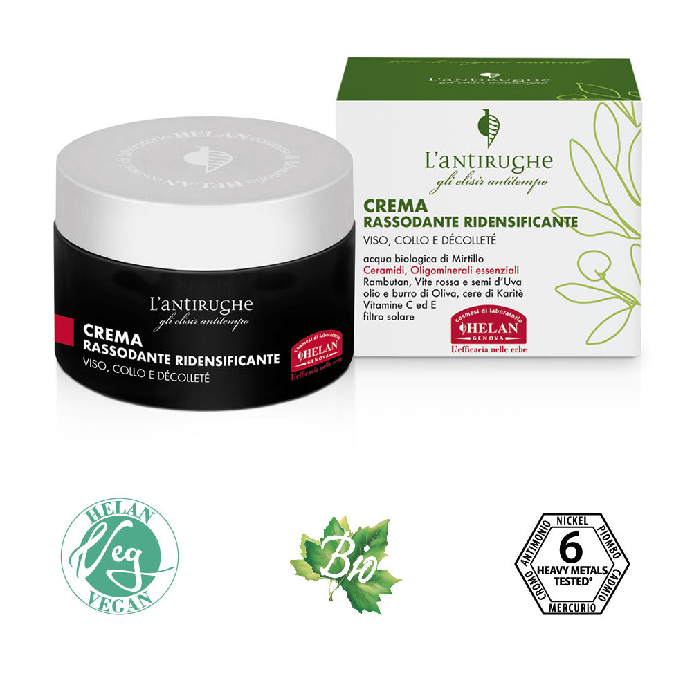 Ceramidi, Oligominerali e Polifenoli in una texture corposa e piacevole per ridensificare la pelle.