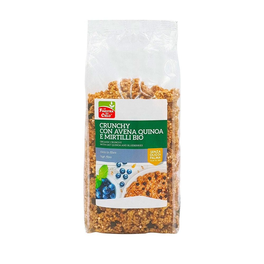 Fiocchi di avena* 42%, fiocchi di farro* 13%, miele*, sciroppo di riso*, olio di girasole*, quinoa soffiata* 8%, farina integrale di farro* 2,2%, mirtilli liofilizzati* 2%, sale. (*da agricoltura biologica)