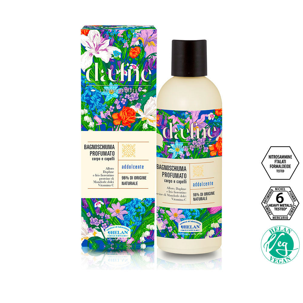 Arricchito dalle proteine di Mandorle dolci, addolcenti e ristrutturanti, dona una pelle morbida, vellutata e una soffice chioma; mentre gli estratti di Alloro, Daphne e Iris florentina, dall’attività calmante e antiossidante, agiscono nel pieno rispetto degli equilibri cutanei. L’aroma si sprigiona in una intensa nube profumata ripristinando carica e vigore.