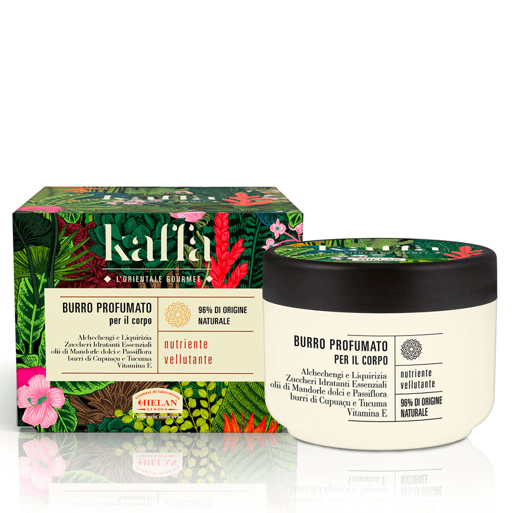 Un calibrato complesso di Zuccheri Idratanti Essenziali, preziosi per limitare le perdite d'acqua attraverso la pelle, olii di Mandorle dolci e Passiflora, burri di Cupuaà§u e Tucuma, dall'alto potere nutriente, e Vitamina E, l'antiradicale libero per eccellenza, associato agli estratti dei frutti d'Alchechengi, ricchi di Vitamina C dalla particolare azione antiossidante e della radice di Liquirizia, lenitiva, valorizza l'azione nutriente di questo burro.