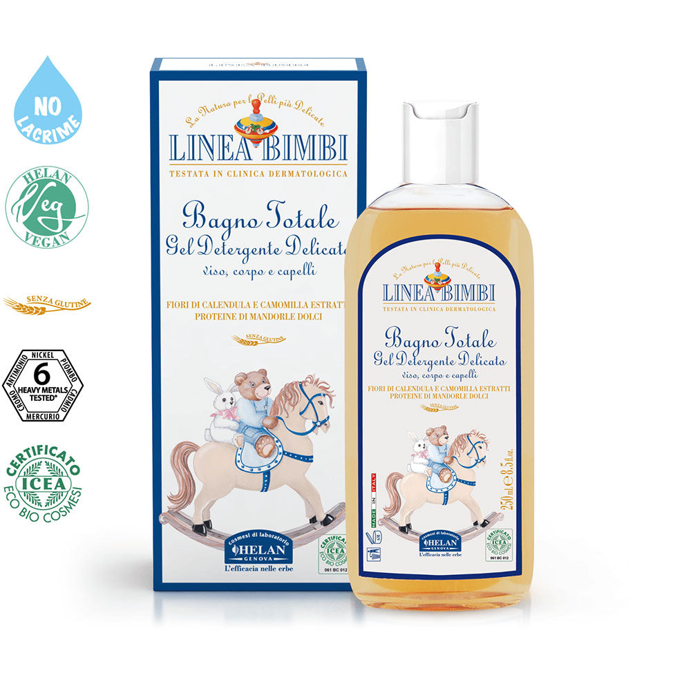 Un unico prodotto per la detersione di viso, corpo e capelli, delicato ideale per i neonati.