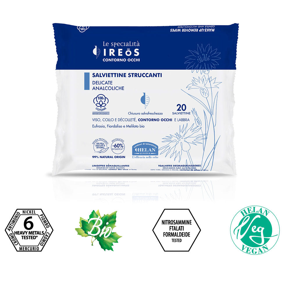 Analcoliche, senza profumo, affiancano all’azione detergente l’effetto rinfrescante e lenitivo tipico del complesso vegetale di fiori di Eufrasia, Fiordaliso e Meliloto bio.